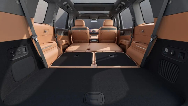 当然,空间方面更不用说,它的前备厢能够坐人,十分好用。另外,三排座椅还能过折叠放平。这一点,是目前很多六座或者七座SUV不能做到的。